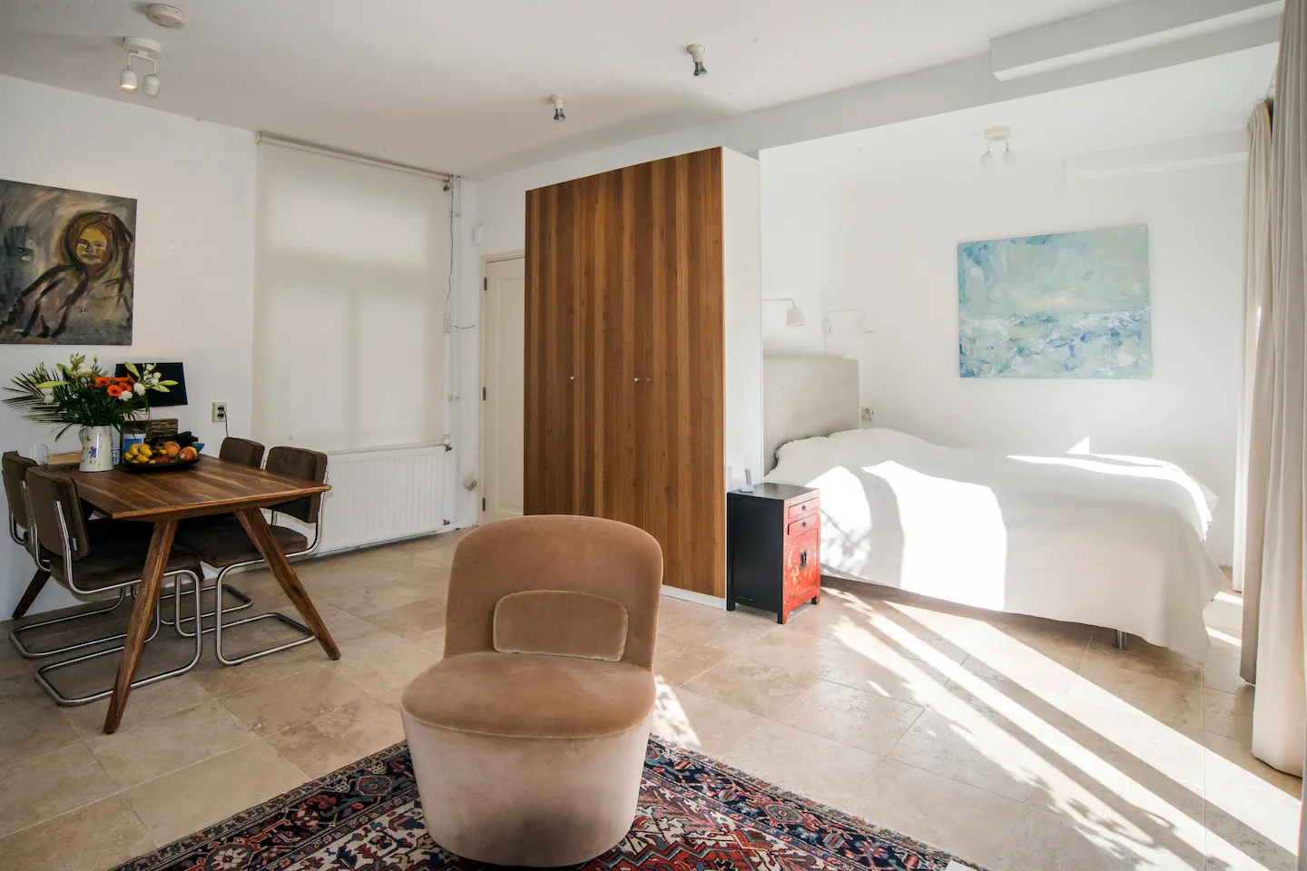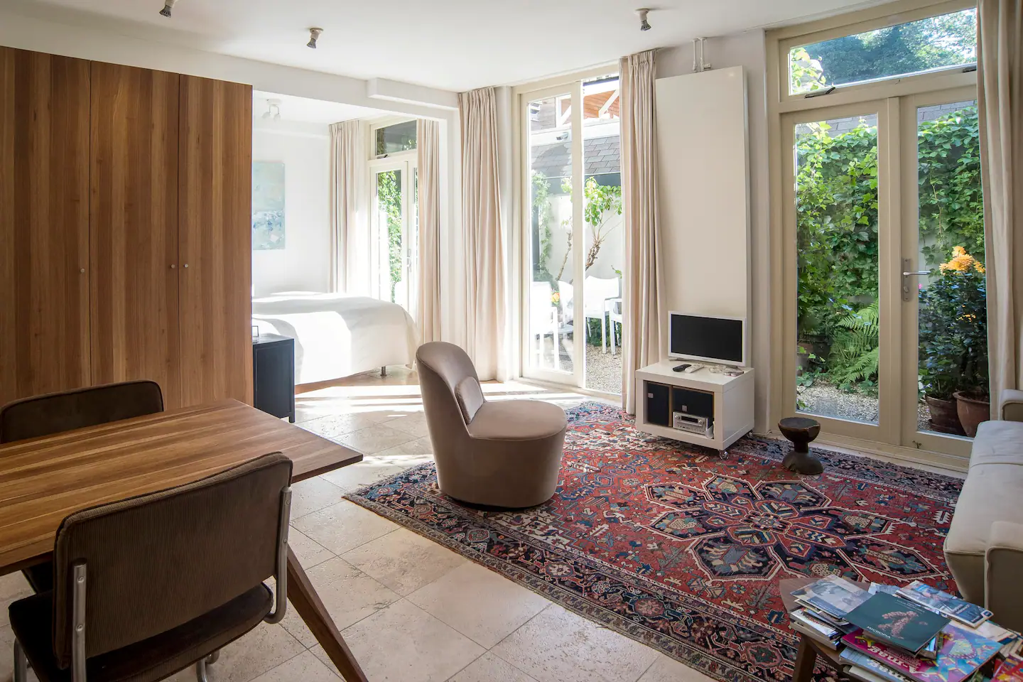 Ground floor studio apartment, very central yet very quiet, close to shops / museums. Perfect connection to Public transport: